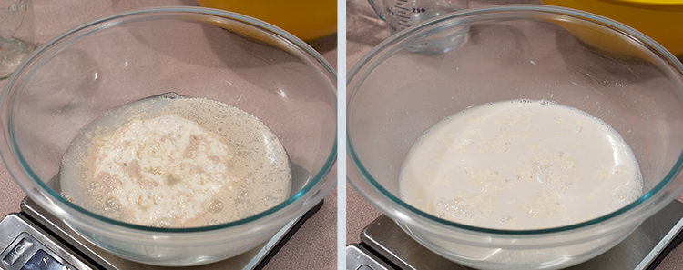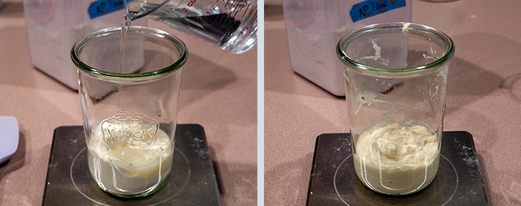 - Whisk together the ingredients for the poolish in a tall jar.
