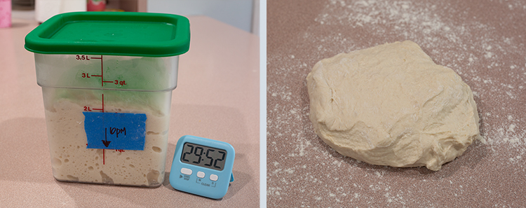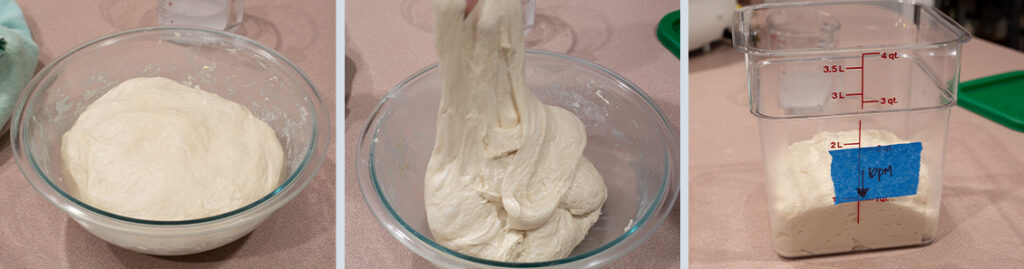 - After you have repeated this process 3 times, cover, and place in the refrigerator overnight, up to 24 hours.Note: I like to transfer mine into a square container (pictured above) that has capacity lines on it. This makes it a bit easier to track how much the dough has risen.
